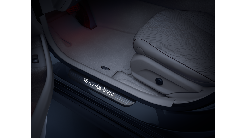 Per personalizzare la vostra vettura vi proponiamo delle soglie d’ingresso illuminate in acciaio legato con scritta Mercedes-Benz.