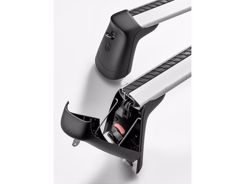 Supporto in alluminio perfettamente abbinato alla carrozzeria della tua Mercedes-Benz composto da due traverse con profili di copertura. Soluzioni di trasporto: come portasci e portasnowboard, portabiciclette o box per il tetto.